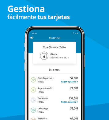 Todas las tarjetas introducidas en la app CaixaBank incorporan el seguro CaixaBankProtect® con el que podrás reclamar operaciones fraudulentas desde el primer euro. Más información en www.CaixaBank.es/CaixaBankProtect.